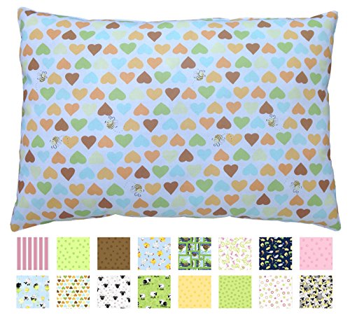 TODDLER PILLOWCASE - 100% Cotton - 200 Thread Count Percale - Envelope Style - Fits 13x18 and 13x19 Pillows - PREMIUM PRODUCT Made in Virginia (Hearts) by A Little Pillow Company