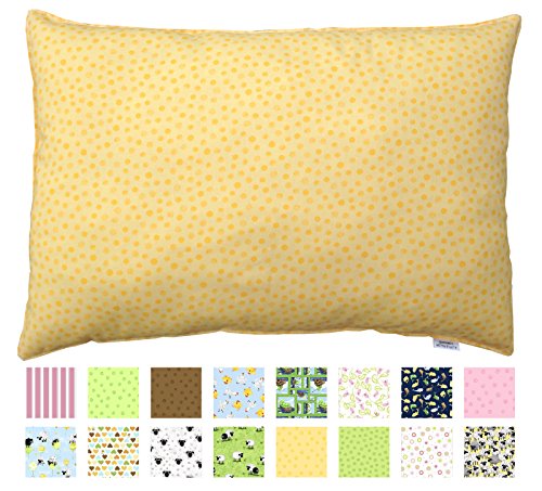 TODDLER PILLOWCASE - 100% Cotton - 200 Thread Count Percale - Envelope Style - Fits 13x18 and 13x19 Pillows - PREMIUM PRODUCT Made in Virginia (Yellow Dots) by A Little Pillow Company