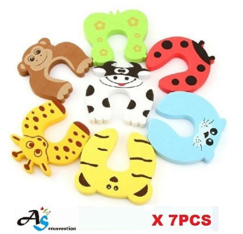 A&S Creaventionアニマルフォームドアストッパークッション子供の安全指ピンチ7PCSセット