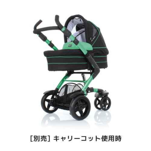 3-Tecではキャリーコットは別売となっています。体重8kgぐらいまでの赤ちゃんのあいだは、フラットに寝かせてあげられるキャリーコットの使用をお勧めします。ワンタッチで対面に取り付けられ、赤ちゃんの様子を見ながらのお散歩ができます。お出かけの途中で眠ってしまっても、そっと取り外してお家までそのまま運ぶことができます。キャリーコットをご使用の場合は、キャリーコット標準装備の3-Tec plusがお買い得です。