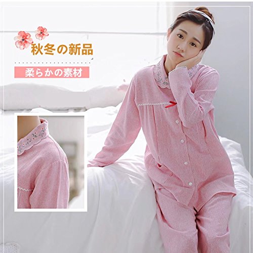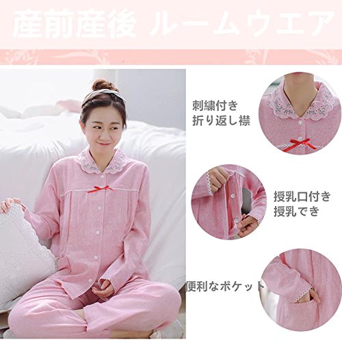 (アビコ)ABICO マタニティ 可愛い パジャマ セット 2色 授乳口付き 授乳用 授乳服 刺繍き襟 蝶結び 前開き ゆったり ウエスト調節 部屋着 厚手 ルームウェア