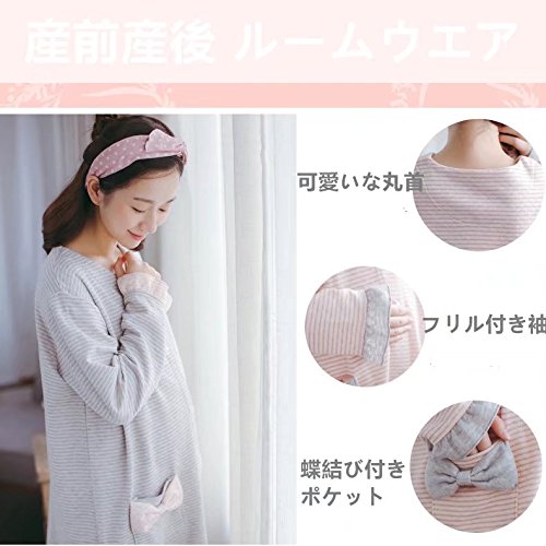 (アビコ)ABICO マタニティ マタニティワンピース 可愛い 2色 授乳口付き 授乳用 授乳服 丸首 蝶結び ゆったり ウエスト調節 部屋着 厚手 ルームウェア