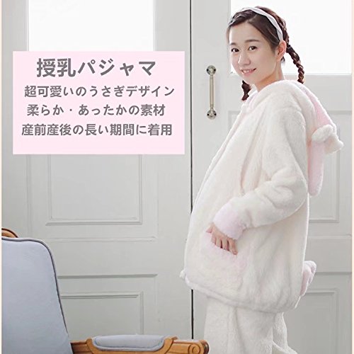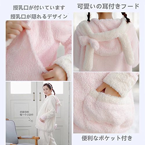 (アビコ)ABICO マタニティ 冬 可愛い フランネル 授乳パジャマ うさぎデザイン 授乳服 授乳口付き 前開き ウエスト調節 部屋着 厚手 あったか ルームウェア 上下セット