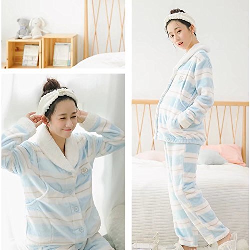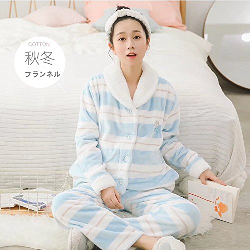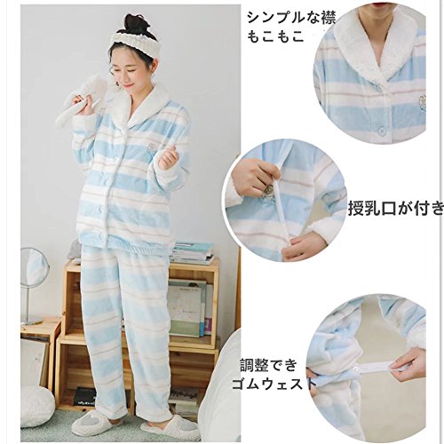 (アビコ)ABICO マタニティ 冬 可愛い フランネル 授乳パジャマ ボーダー柄 授乳服 授乳口付き 前開き ウエスト調節 あったか 厚手 部屋着 ルームウェア 上下セット