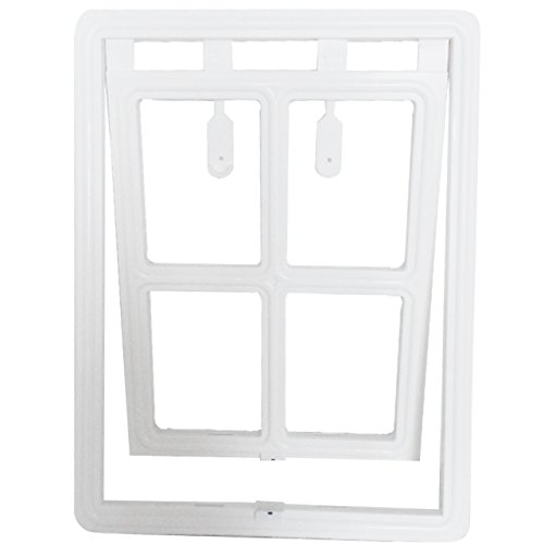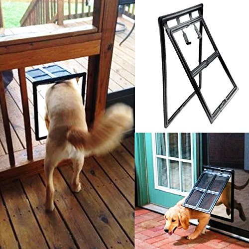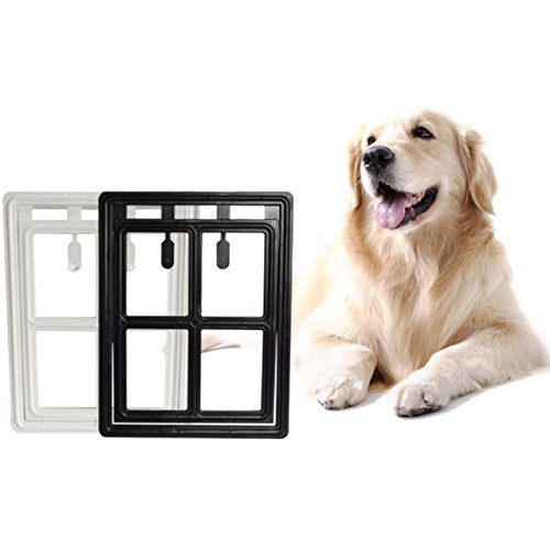ABINECS 網戸専用 犬猫出入り口ドア(中型犬用Lサイズ・ブラック) 網を破られても安心 網戸張り替えローラー付き (ホワイト)