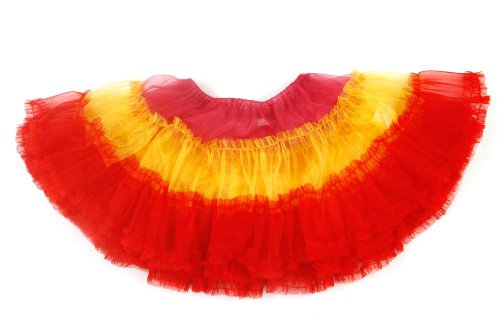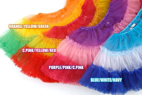 とっても軽くボリューム満点 派手かわいいチュチュスカート(チュールスカート) ダンス衣装に イベントに 大人気 ACDCからふわふわフリフリチュチュスカート 3色グラデのラメチュール2段重ねのかわいく目立つ おすすめスカートです とにかくとっても軽くボリューム満点なので小柄なお子様にもおすすめ ウエストゴムでキッズ&ジュニアにもGood グリーン・赤・ピンク・ブルー4色展開。 スカートは透けますが、カラータイツやレギンスと合わせていただいて透け感をかわいくアピールしてくださいね メーカー公表サイズ フリーサイズ ウエスト:58~96cm 丈:25cm