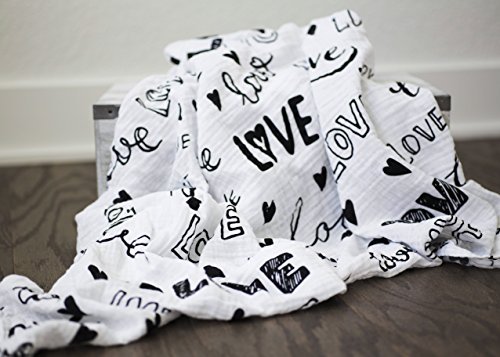 100% Organic Muslin Swaddle Blanket by ADDISON BELLE - Oversized 47 inches x 47 inches - Best Baby Shower Gift - Premium Receiving Blanket (Love Print) by ADDISON BELLE