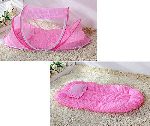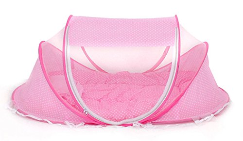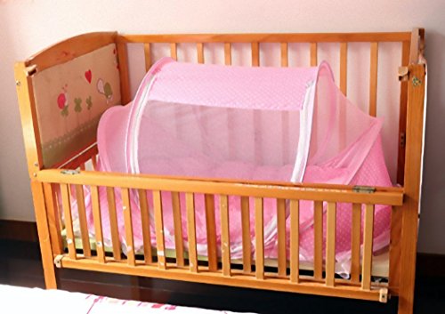 折りたたみ ワンタッチ ベビーベッド 蚊帳 付き 虫よけ ベビー蚊帳 布団付き (ピンク)