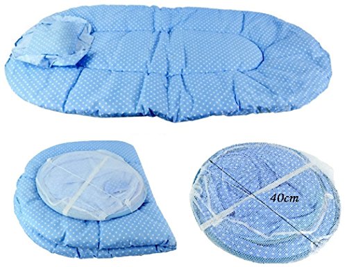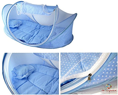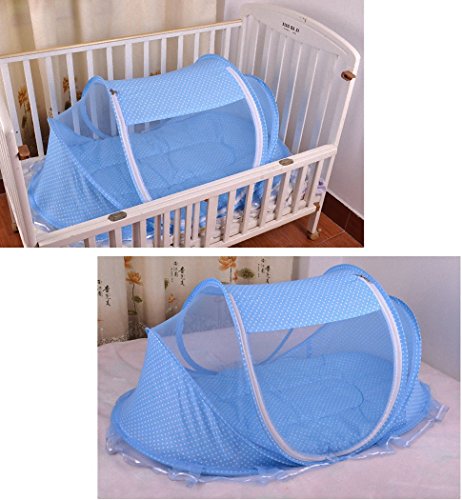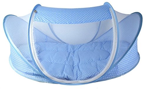 折りたたみ ワンタッチ ベビーベッド 蚊帳 付き 虫よけ ベビー蚊帳 布団付き (ブルー)