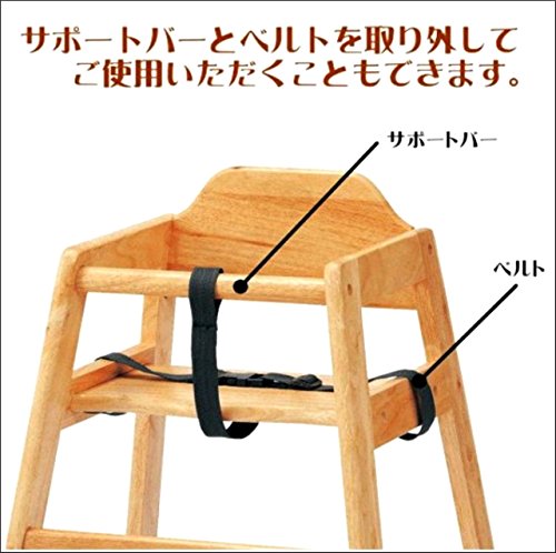 - 木製のハイタイプのベビーチェアー。天然木の風合いがおしゃれな食事用の椅子です。6ヶ月から5歳頃までのお子さまに対応。サポートバーとベルト付きですが、取り外しも可能でお子様が成長されても子供用チェアとしてお使い頂けます。