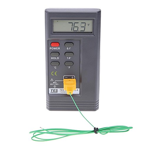 デジタルLCDディスプレイ温度計高精度温度測定-50℃〜1300℃ デジタルLCDディスプレイ温度計接触型温度計2メートルプローブ付きのGague 関数: Hデータ保持表示℃/℉ スイッチングオプション:0.1°/ 1°分解能選択、3-1 / 2 LCD表示 範囲外の表示:1 ------ バッテリー残量表示:BT 仕様: 試験範囲:-50℃〜1300℃、-50℉〜1999℉ センサ:Kタイプ熱電対 入力:シングル 解決: -50℃〜199.9℃... 0.1℃ -50°F〜199.9°F ... 0.1°F(その他-1°C / 1°F) 正確さ: 50℃〜199.9℃... 0.2%rdg + 1℃ -50°F〜199.9°F ... 0.2%rdg + 1°F -50℃〜1000℃... 0.3%rdg + 1℃ -50°F〜1999°F ... 0.3%rdg + 2°F 1000℃〜1300℃... 0.5%rdg + 1℃ 23℃±5℃でのみメインフレームに適用 保護を入力してください: 熱電対コーナーの最大入力電圧:60V DCまたは24Vrms AC サンプリングレート:毎秒2.5回 動作温度: 0℃〜50℃(32℉〜122℉) 0〜90%R.H.(0〜35℃) 電源:9Vバッテリー1個 サイズ:(L×W×H)135×70×30mm / 5.31×2.75×1.18in 重量:144g 付属品:取扱説明書、熱電対線 パッケージ内容: 1×温度計(別売) 1×2mプローブ 1 xユーザーマニュアル