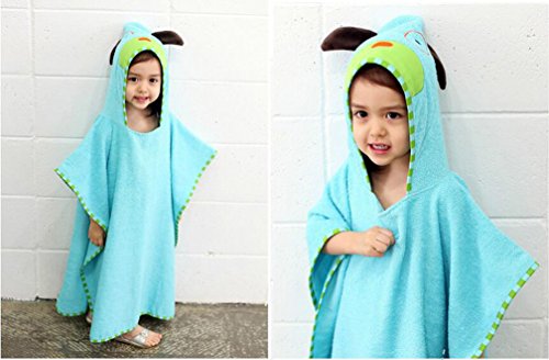 (艾とら)AIHU 子供用 アニマルフード付き バスタオル ブルー 子犬
