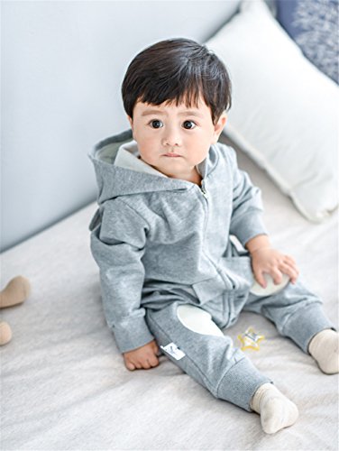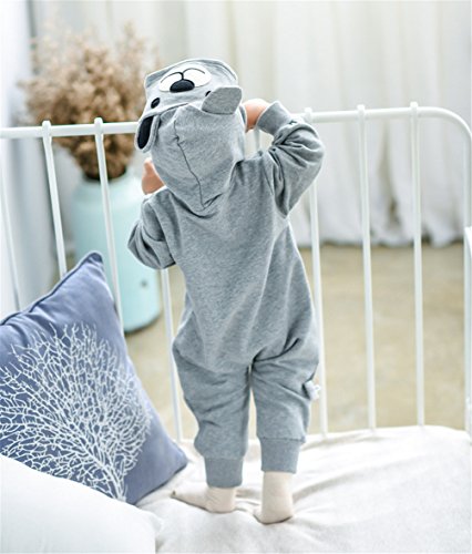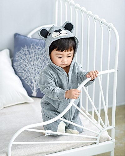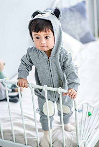AIKEE 子供服 ベビー クマ 着ぐるみ カバーオール 赤ちゃん 長袖 ロンパース 春新品 前開き 裏起毛 オールインワン かわいい キッズ ボディースーツ BEAR GREY 73