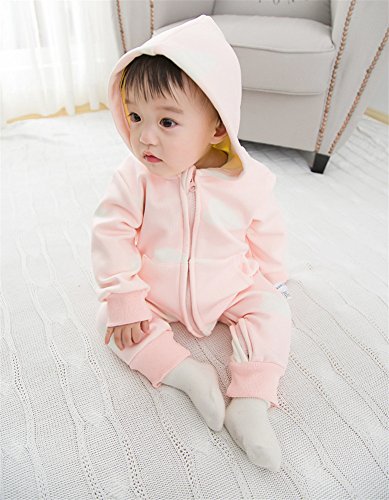 AIKEE ベビー ロンパース 赤ちゃん 裏フリース カバーオール 秋 冬 前開き あったか オールインワン かわいい キッズ ボディースーツ 子供服 PINK 66