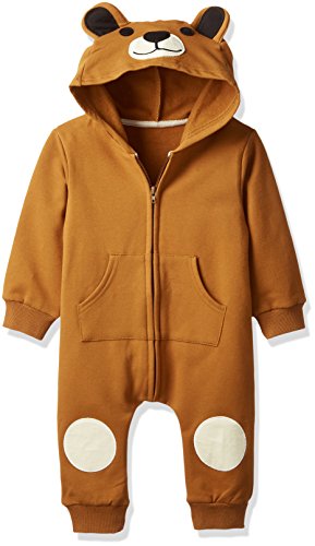 AIKEE 子供服 ベビー クマ 着ぐるみ カバーオール 赤ちゃん 長袖 ロンパース 春新品 前開き 裏起毛 オールインワン かわいい キッズ ボディースーツ BEAR BROWN 73