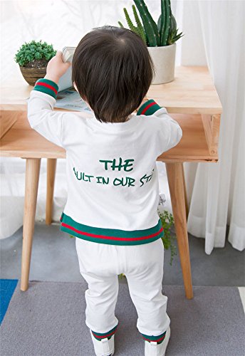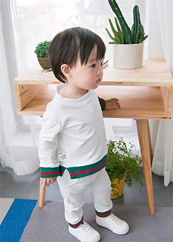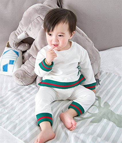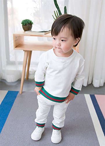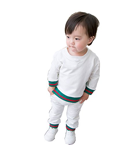 ベビー スウェット セットアップ 男女児兼用 長袖 Tシャツ + ロングパンツ お出かけ用 部屋着 ルームウェア WHT 100