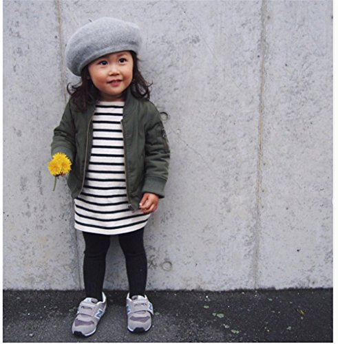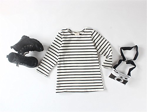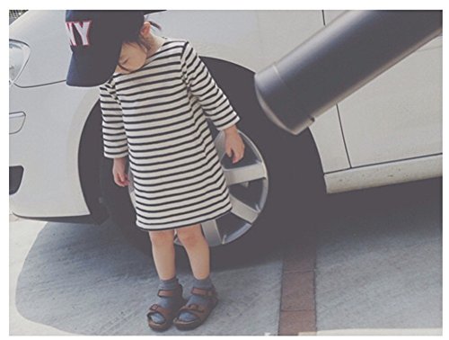 AIKEE ベビー 女の子 シンプル 定番 ストライプ ワンピース 長袖 ボーダー Aラインワンピース 80