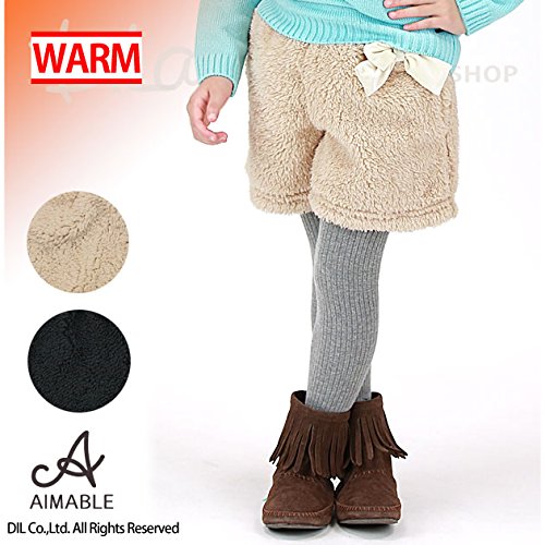 [おしゃれ 女の子 子供服 AIMABLE エマーブル 幼児 短パン ショートパンツ 黒 白 リボン あったか][80cm・90cm・100cm・110cm・120cm・130cm・140cm]