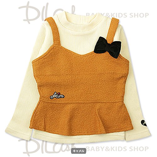 (エマーブル) AIMABLEテレコリブ長袖Tシャツ&ビスチェセット/秋 ベビー キッズ 女の子 90 キャメル
