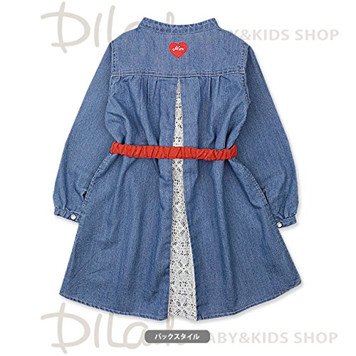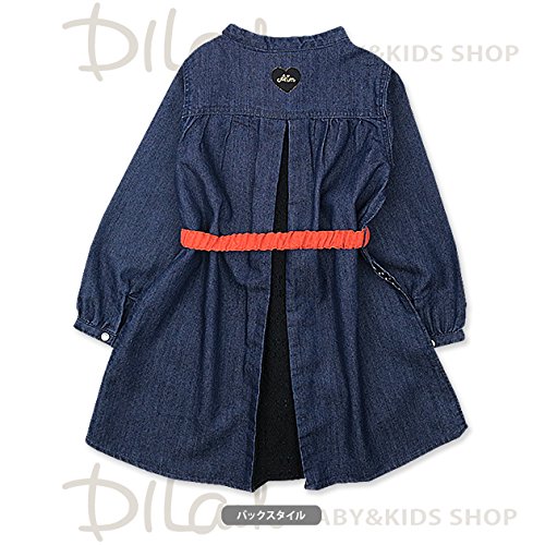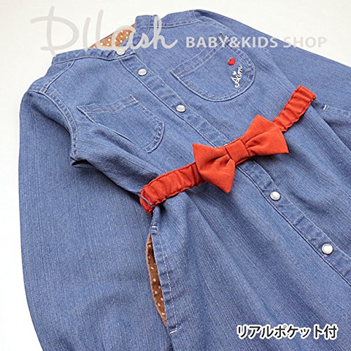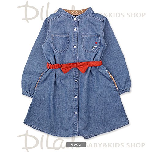 (エマーブル) AIMABLEリボンベルト付きデニムシャツ長袖ワンピース/秋 ベビー キッズ 女の子 130 サックス