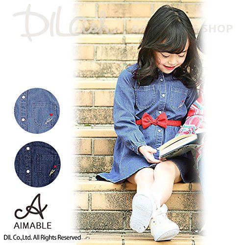 [おしゃれ女の子子供服AIMABLE(エマーブル)リニューアルしてデビュー!キッズ ベビー 幼児 女児 子供 綿100 秋 シャツワンピ ダンガリー][80cm・90cm・100cm・110cm・120cm・130cm・140cm]