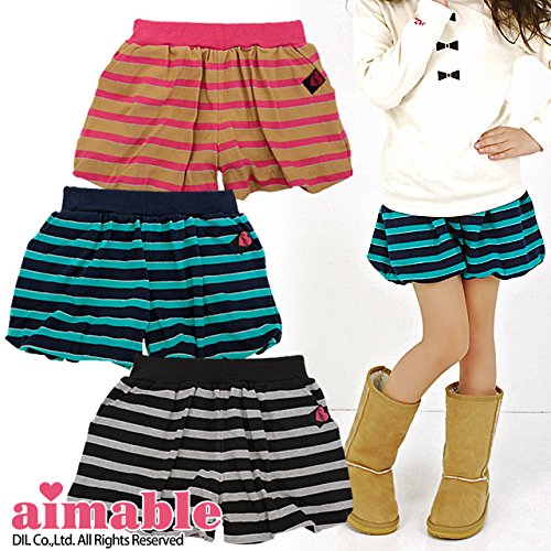 (エマーブル) AIMABLE 鹿の子ボーダーバルーンキュロット 130 ピンク