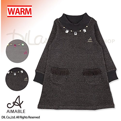 (エマーブル) AIMABLEビジュー付き裏毛起毛ワンピース/冬 裏起毛 100 グレー