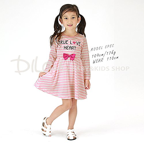 ワンピース・先染めボーダー・リボン・女児 80cm・90cm・100cm・110cm・120cm・130cm・140cm