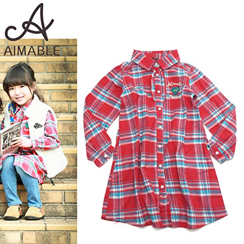 AIMABLE(エマーブル) 起毛先染め「チェック」長袖ワンピース・レッド【1603】【C】 110 レッド(RR)