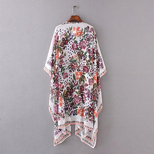 aimtoppyレディースフローラル柄シフォンゆったりショール着物カーディガントップカバーUpシャツブラウス l3 ホワイト AIMTOPPY