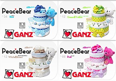 - 大好評によりテレビでで紹介されたおむつケーキ!4色で新登場♪ガンドの可愛いピースベア★