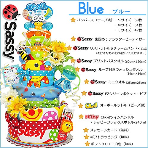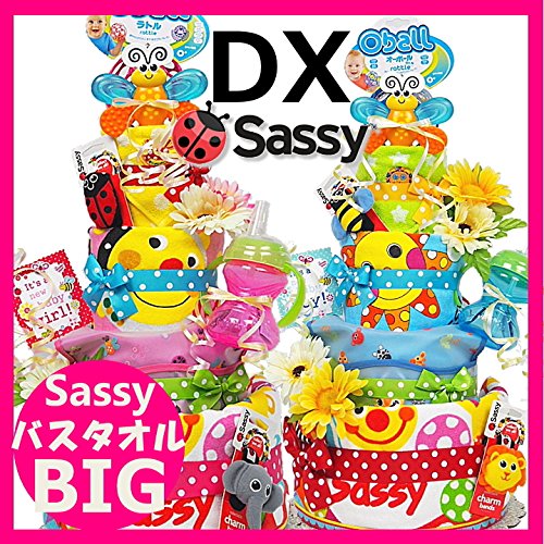 - 大好評豪華Sassy(サッシー)デラックス4段おむつケーキ!ベビーアイテム10点の大満足の出産祝いギフト!!男の子用、女の子用で新登場★