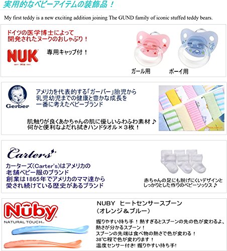- ●付属内容 パンパースおむつ オルゴール付ぬいぐるみ (Caters) おしゃぶり(NUK) ベビーソックス(H&M) ウォッシュタオル×3枚 離乳食用スプーン(Nuby)