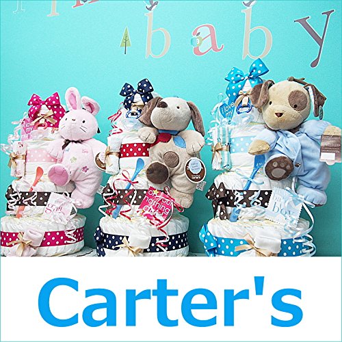 大人気ブランド! Catersの人気シリーズ♪ カーターズオルゴール付♪ぬいぐるみ ふわふわで肌触りが良いのです。 ベビーベットに引っ掛け心地よいメロディーで 赤ちゃんにもぐっすり!最適なアイテムです。 豪華4段おむつケーキ♪ 出産祝いにピッタリのキュートなギフトです♪