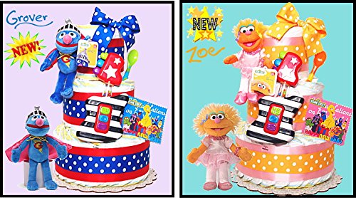 ★出産祝い!大人気のセサミストリートのおむつケーキ新登場♪かわいいエルモ・クッキーモンスター★思わず赤ちゃんも笑顔に♪出産祝い・ぬいぐるみ (Sサイズ40枚(目安2~5ヶ月), ゾーイ)