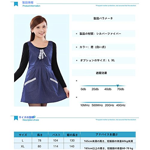 妊婦の放射線スーツ 妊娠中の女性放射線スーツ 電磁波カット服 電磁波カットエプロン 電磁波対策エプロン 電磁波防止デ 電磁波防止キャミソール 電磁波防止服 電磁波対策服 電磁波カットに 銀繊維100%素材 妊婦服 電磁波遮蔽率99.999% 360度に妊婦と胎児の健康を守ります (ブルー, XL)