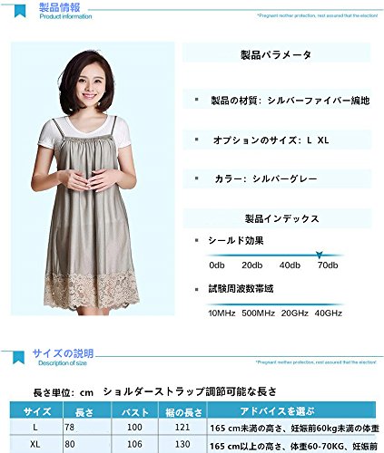 電磁波カット服 電磁波カットエプロン 電磁波対策エプロン 電磁波防止デ 電磁波防止キャミソール 電磁波防止服 電磁波対策服 電磁波カットに 銀繊維100%素材 妊婦服 電磁波遮蔽率99.999% 360度に妊婦と胎児の健康を守ります (シルバーグレー, XL)