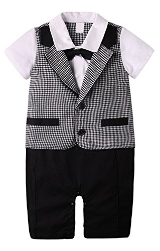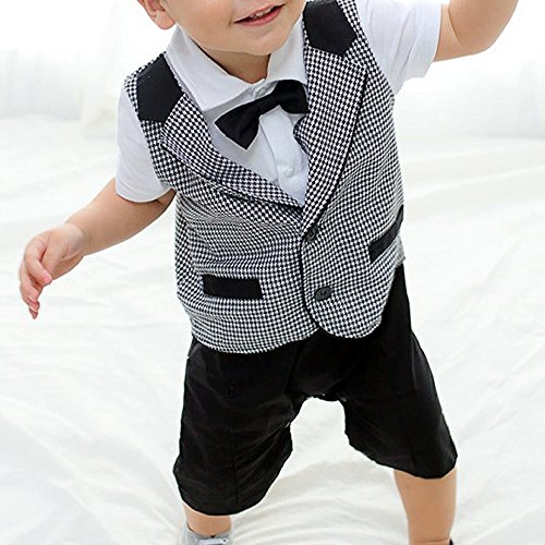 (エーケー) AK Style ベビー キッズ フォーマル 蝶ネクタイ 千鳥格子 ベスト 一体型 半袖 ロンパース 正装 カバーオール 赤ちゃん 男の子 ボーイズ 子供服 160304-2(ブラック-70)