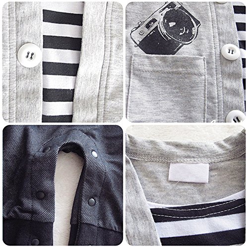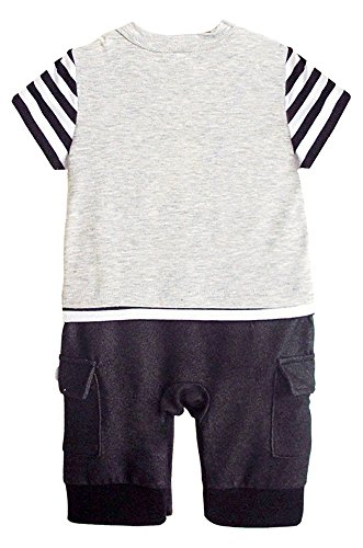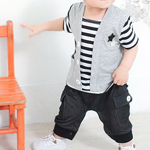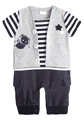 (エーケー) AK Style ベビー キッズ 半袖 ボーダー Tシャツ ベスト パンツ 一体型 カジュアル ロンパース カバーオール つなぎ 赤ちゃん 男の子 ボーイズ 子供服 160304-4(グレー-80)