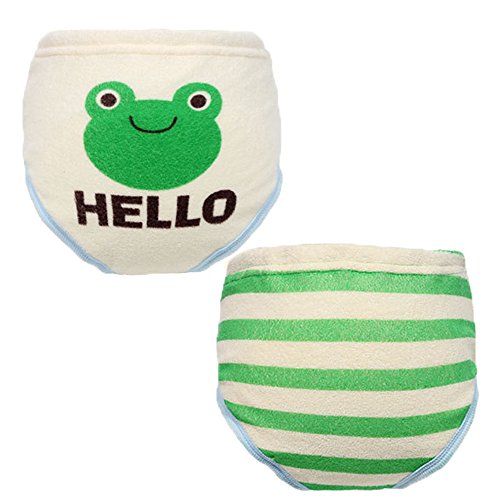 AKC トレーニング パンツ ベビー 中股6層 トレパン かわいい 2枚組 防水加工 (95, カエル)