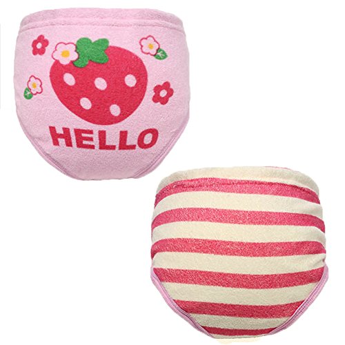 AKC トレーニング パンツ ベビー 中股6層 トレパン かわいい 2枚組 防水加工 (95, イチゴ)