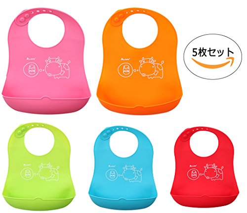 AKC ソフトスタイ ビブ 食事エプロン よだれかけ シリコンスタイ ベビー 5枚セット (牛ちゃん)