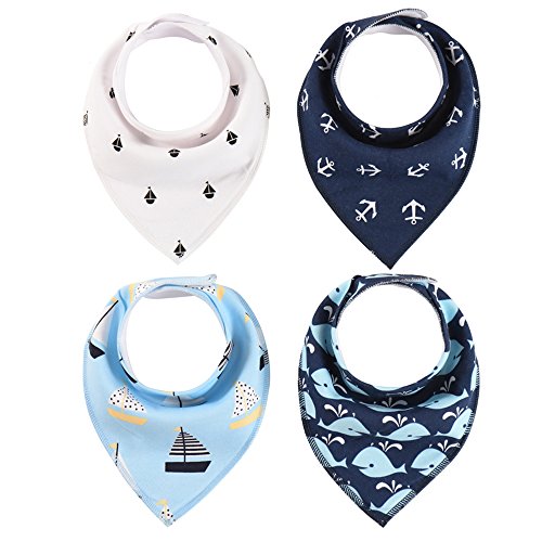 AKC スタイ ビブ よだれかけ コットン100% 柔らかい 2層タイプ スナップ 三角 ベビー 4枚セット (Lセット)