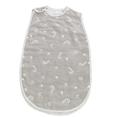 AKC ベビー スリーパー パジャマ 4重ガーゼ 薄手 コットン 寝袋 赤ちゃん 出産祝い (四層グレー)