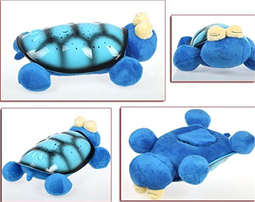 AKSSWEET 可愛い トワイライト タートル ナイトスカイ 【 夜空 星座 イルミネーション LED ライト プロジェクター USBケーブル 電池式 】 夜の光 睡眠 ぬいぐるみ 音楽35.5*23*12cm (ブルー)