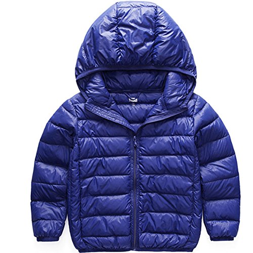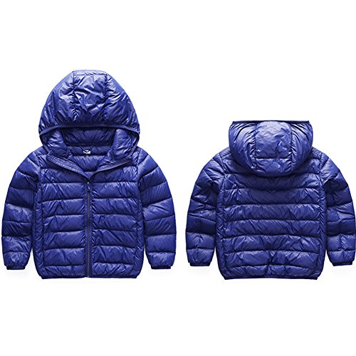 AKSSWEET 子供服 ダウンコート ダウンジャケット キッズ ベビー ジャケット 無地 フード付き ベビー服 女の子 男の子 子ども アウター 防寒 無地 軽量 冬 100~160cm 全8色 (130cm, ブルー)
