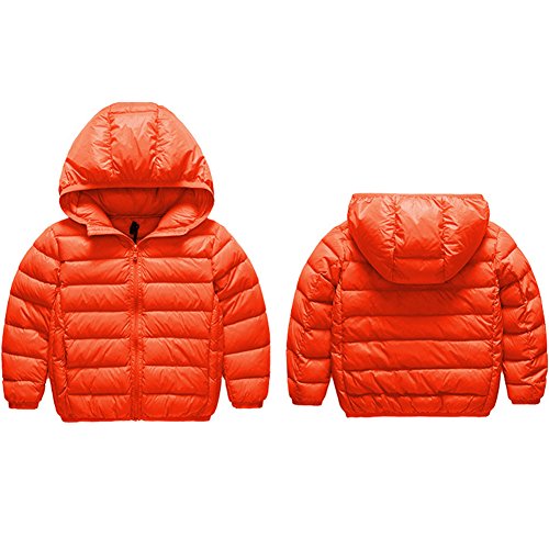 AKSSWEET 子供服 ダウンコート ダウンジャケット キッズ ベビー ジャケット 無地 フード付き ベビー服 女の子 男の子 子ども アウター 防寒 無地 軽量 冬 100~160cm 全8色 (160cm, オレンジ)