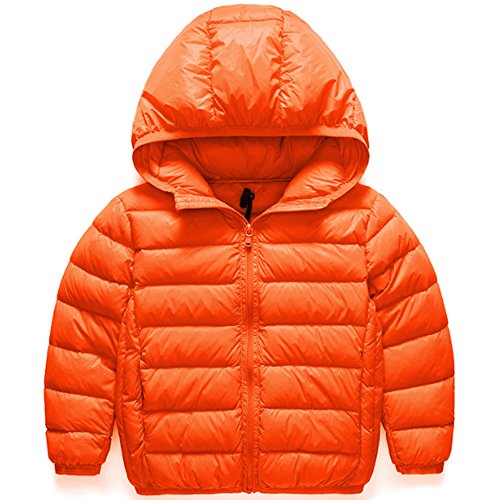 AKSSWEET 子供服 ダウンコート ダウンジャケット キッズ ベビー ジャケット 無地 フード付き ベビー服 女の子 男の子 子ども アウター 防寒 無地 軽量 冬 100~160cm 全8色 (140cm, オレンジ)