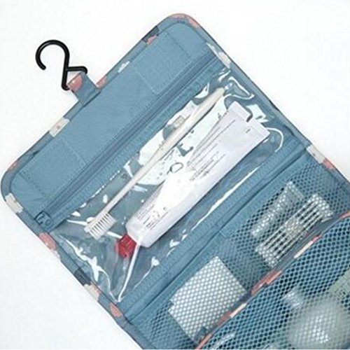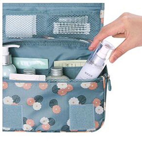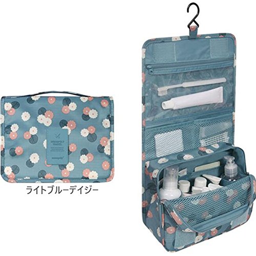 AKSSWEET 収納バッグ 旅行、出張用バック 洗面用具入れ 化粧ポーチ トラベルポーチ バスルームポーチ マジックテープ フック付き コスメポーチ吊り下げ 旅行 便利グッズ 小物整理 7色選択可 (ライトブルーデイジー)