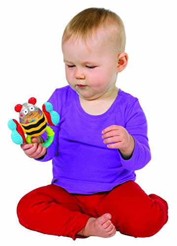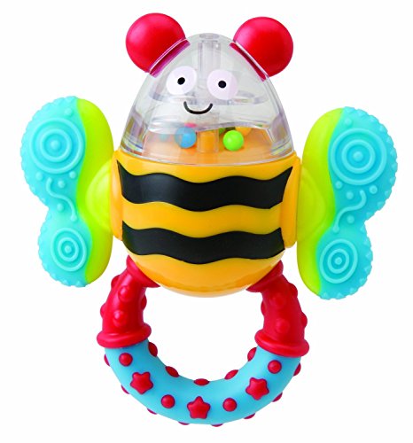 ALEX Jr. Click Clack Bee Rattle is an interactive bee-shaped baby toy which has wings that click clack when played with. Its fun to hold handle has a star texture and like the wings, is safe for teething. Recommended for children 3 months of age and older.
